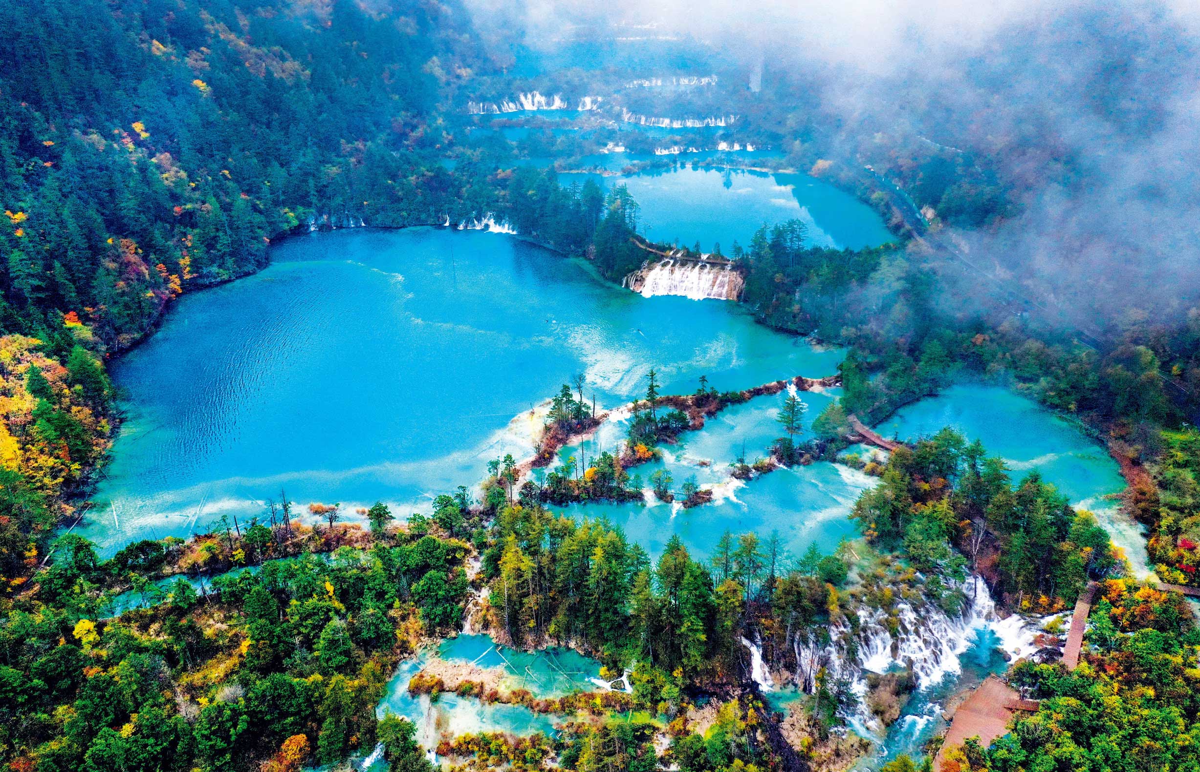 -Khu du lịch thắng cảnh Cửu Trại Câuđược mệnh danh là “Thiên đường nơi hạ giới”. Nằm trong khu vực Châu tự trị dân tộc Tạng A Bá và dân tộc Khương. Đây là vùng núi non hùng vĩ ở độ cao 4.000m so với mặt nước biển. Quý khách sẽ chiêm ngưỡng những rừng thông trùng điệp và hàng trăm ghềnh thác, hồ nước đa sắc và những thác nước nhiều tầng vô cùng hùng vĩ – được UNESCO công nhận là di sản văn hóa thế giới, nơi đây cũng chính là bối cảnh được chọn để quay Hoa Quả Sơn trong phim Tây Du Ký.