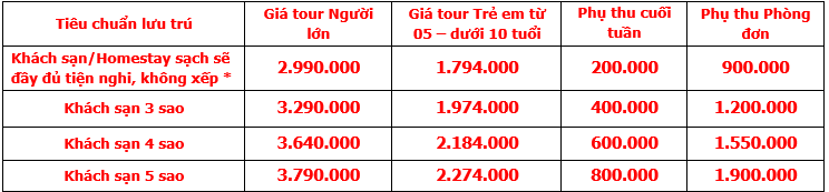 GIÁ TOUR BAO GỒM