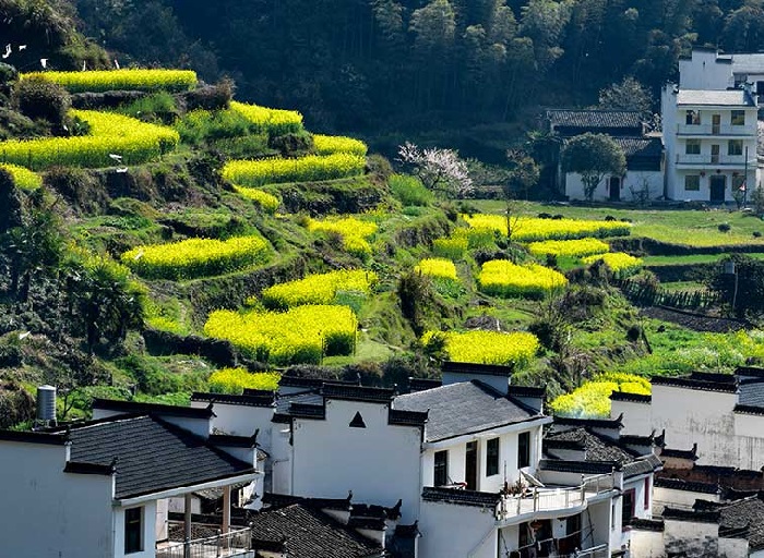 Xe và HDV địa phương đón đoàn di chuyển đến Làng Cổ Vụ Nguyên – thôn quê đẹp nhất Trung Quốc. Vụ Nguyên là nơi lưu giữ những kiến trúc cổ xưa được bảo tồn tốt nhất Trung Quốc, được thiên nhiên ưu đãi, bao bọc với cảnh quan dãy Hoàng Sơn hùng vĩ, sắc xanh của những đồng lúa và cảnh quan làng mạc trù phú.(là một huyện thuộc địa cấp thị Thượng Nhiêu).
