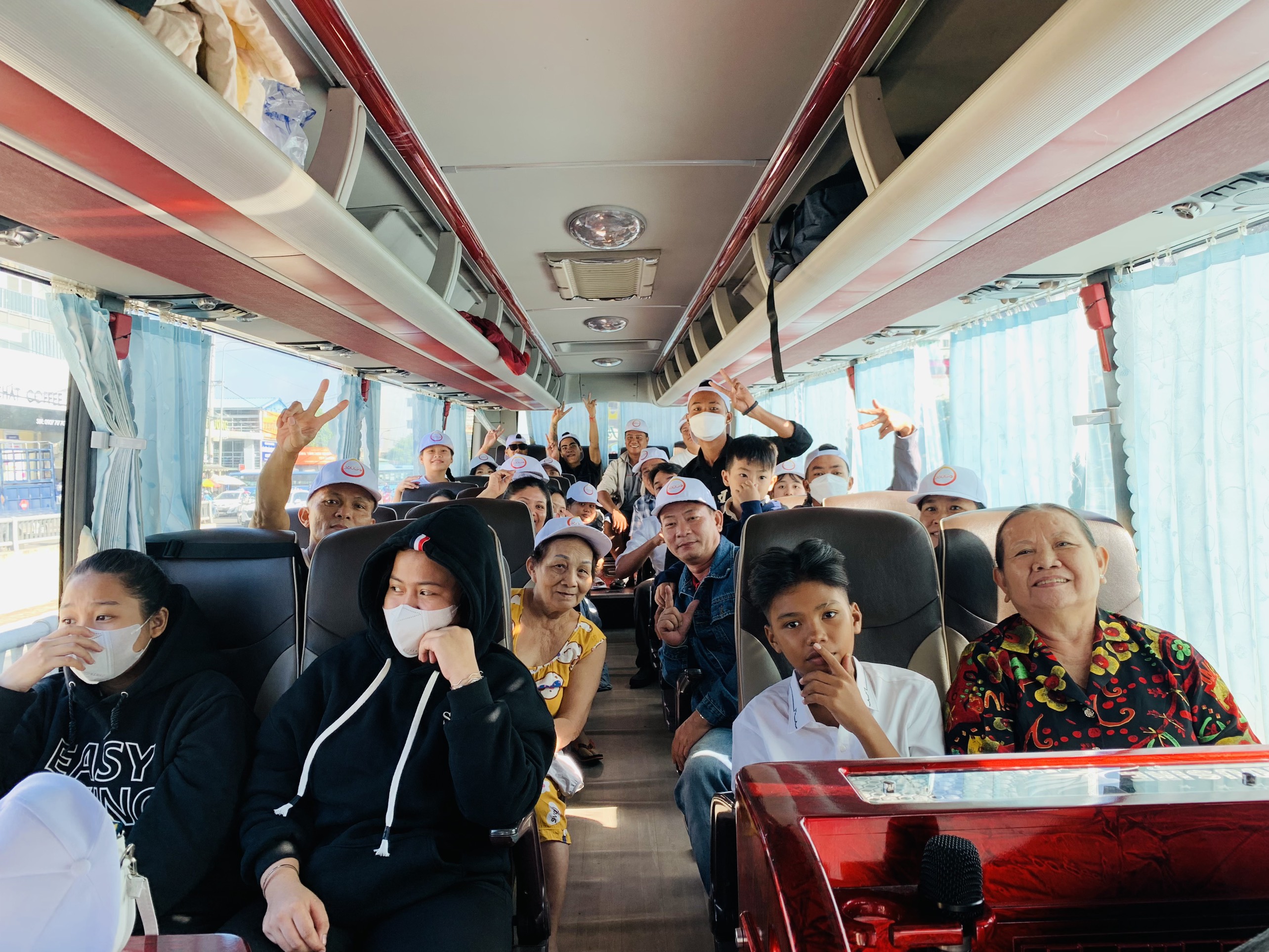 Xe xuất phát khởi hành. Quý khách tham gia giao lưu vui nhộn trên xe. Xe sẽ ghé trạm dừng chân qua địa phận Đồng Nai để Đoàn nghỉ ngơi hoặc những khách hàng chưa kịp ăn sáng có thể dùng bữa sáng (chi phí tự túc).