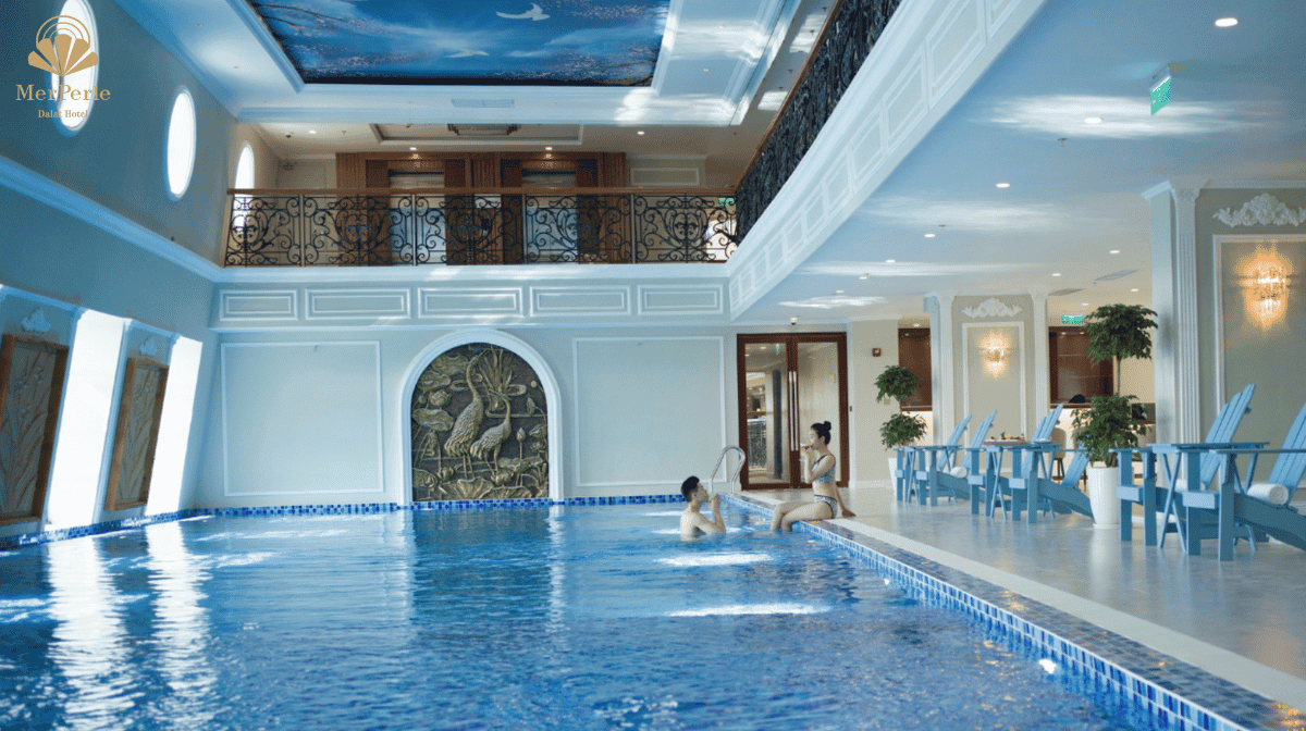 Hồ Bơi Nước Ấm Tọa lạc tại tầng 9 khách sạn, là hồ bơi nước ấm đầu tiên tại Đà Lạt nằm ở tầng cao của khách sạn 5 sao, với diện tích hơn 160 mét vuông cùng hệ thống nước ấm phù hợp với khí hậu vùng cao, bộ xử lý và lọc hiện đại, hồ bơi nước ấm khách sạn MerPerle Dalat mang đến những trải nghiệm chỉn chu và đẳng cấp dành cho quý du khách khi lưu trú ở đây.