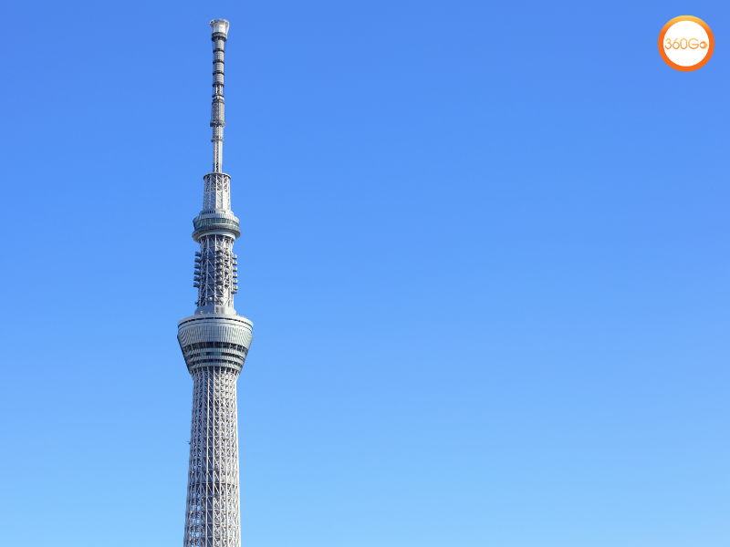 • Chụp hình bên ngoài tháp truyền hình Tokyo Sky Tree - tháp truyền hình cao nhất thế giới hiện nay với chiều cao 634m.
