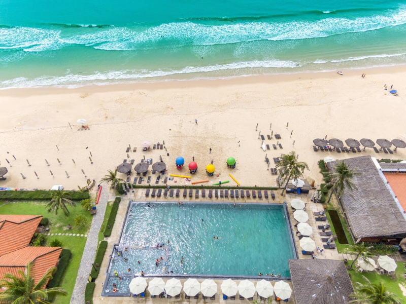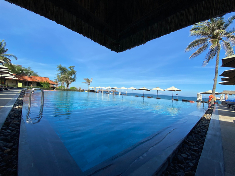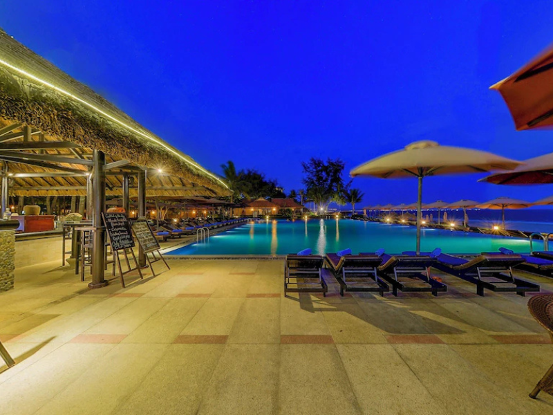 Chiều: Quý khách tự do tắm hồ bơi, tắm biển với bãi biển trải dài cùng bờ cát vàng óng ả, nước biển xanh trong, chỉ các vài bước chân là tới bãi biển trước mặt tiền của khu nghỉ dưỡng. Trải nghiệm các hoạt động như Team building, chèo Sup trên biển, thả diều,... (chi phí vui chơi tự túc).