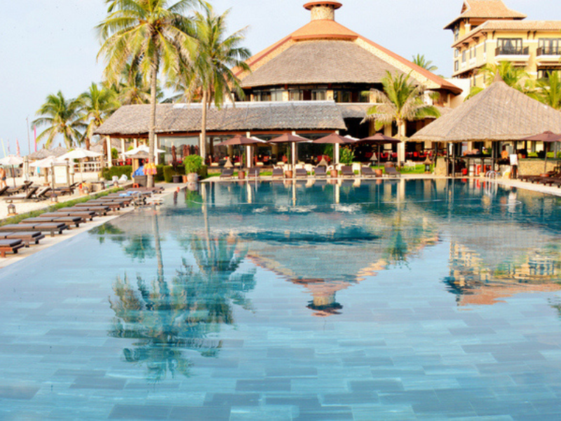 Chiều: Quý khách tự do tắm hồ bơi, tắm biển với bãi biển trải dài cùng bờ cát vàng óng ả, nước biển xanh trong, chỉ các vài bước chân là tới bãi biển trước mặt tiền của khu nghỉ dưỡng. Trải nghiệm các hoạt động như Team building, chèo Sup trên biển, thả diều,... (chi phí vui chơi tự túc).