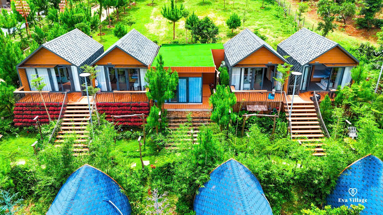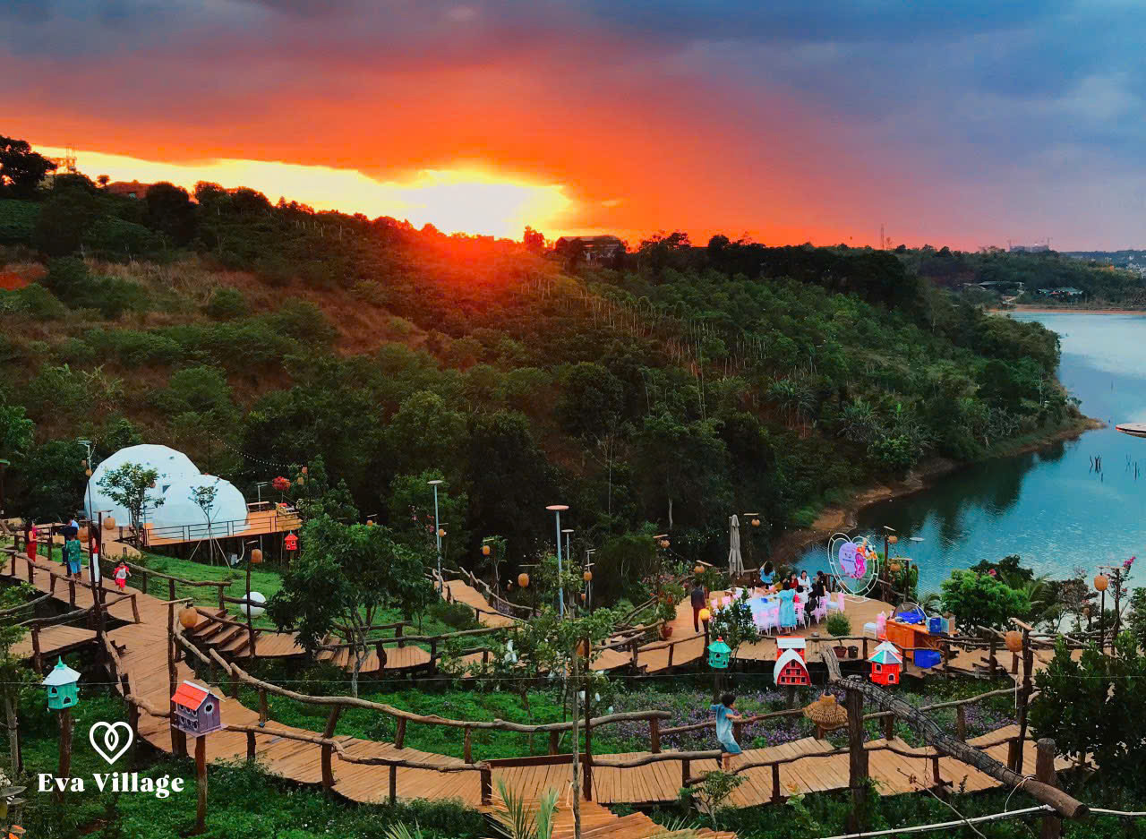 + Eva Eco Village – khu nghỉ dưỡng sinh thái giữa đại ngàn Tây Nguyên. Với kiến trúc mộc mạc gần gũi thiên nhiên, bao quanh là núi rừng và hồ nước trong xanh, Eva mang đến không gian thanh bình, thư thái. Qúy khách sẽ được thỏa sức check-in tại hồ bơi vô cực, góc cầu gỗ, vườn hoa bốn mùa và tận hưởng hoàng hôn tuyệt đẹp từ ban công bungalow. Những bức ảnh tại Eva chắc chắn sẽ làm "nổ tung" mạng xã hội!