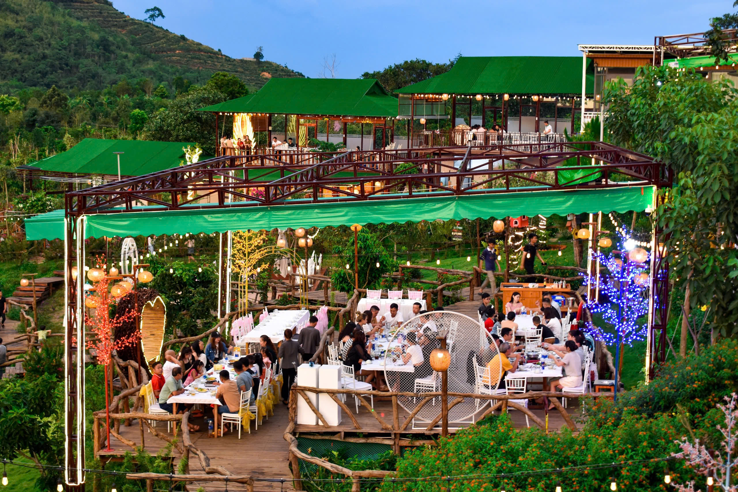 Tối, Dùng bữa tối lung linh ánh đèn tại Eva – ấm cúng giữa thiên nhiên, lý tưởng cho những buổi trò chuyện quây quần bên nhau.