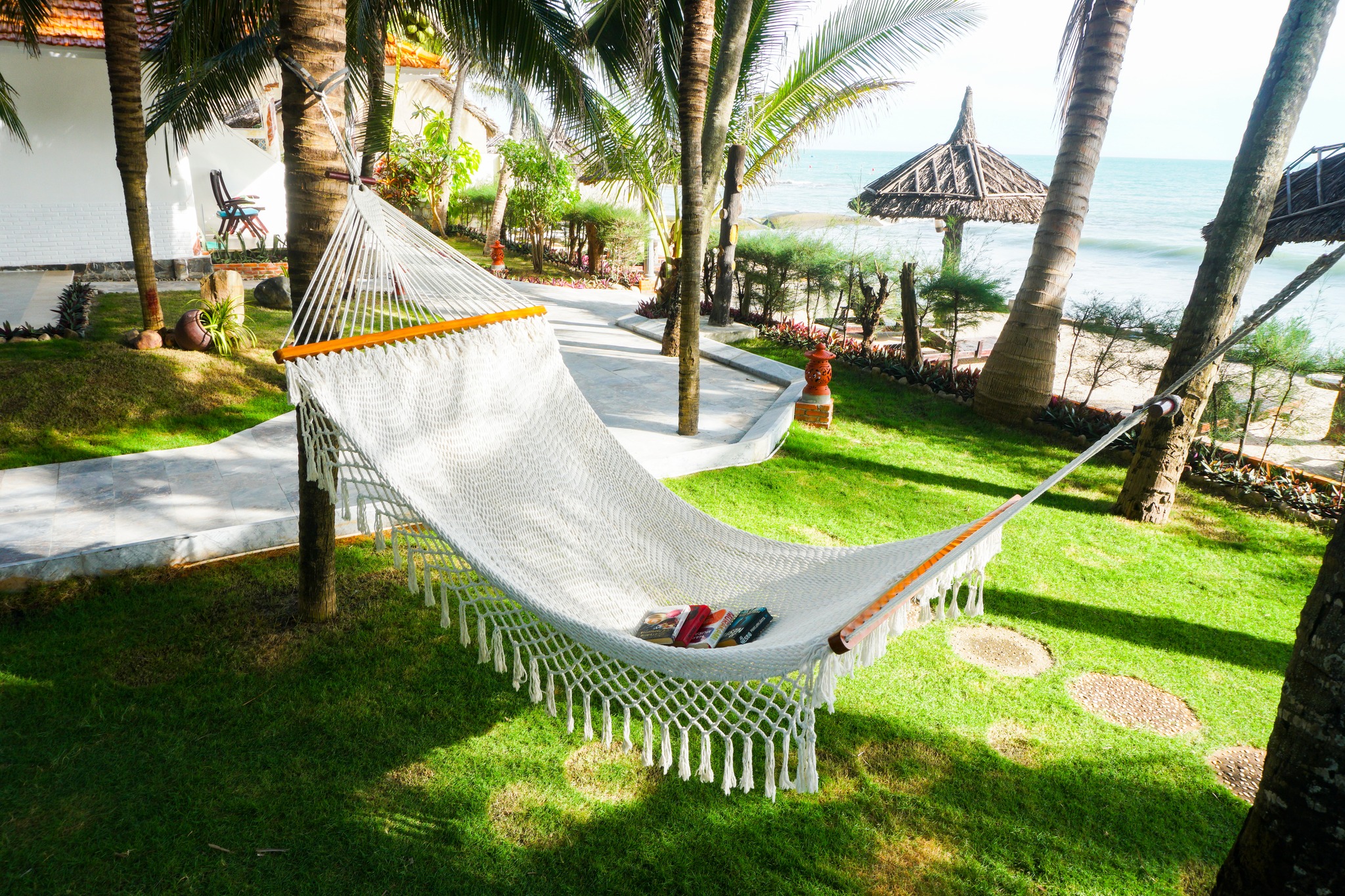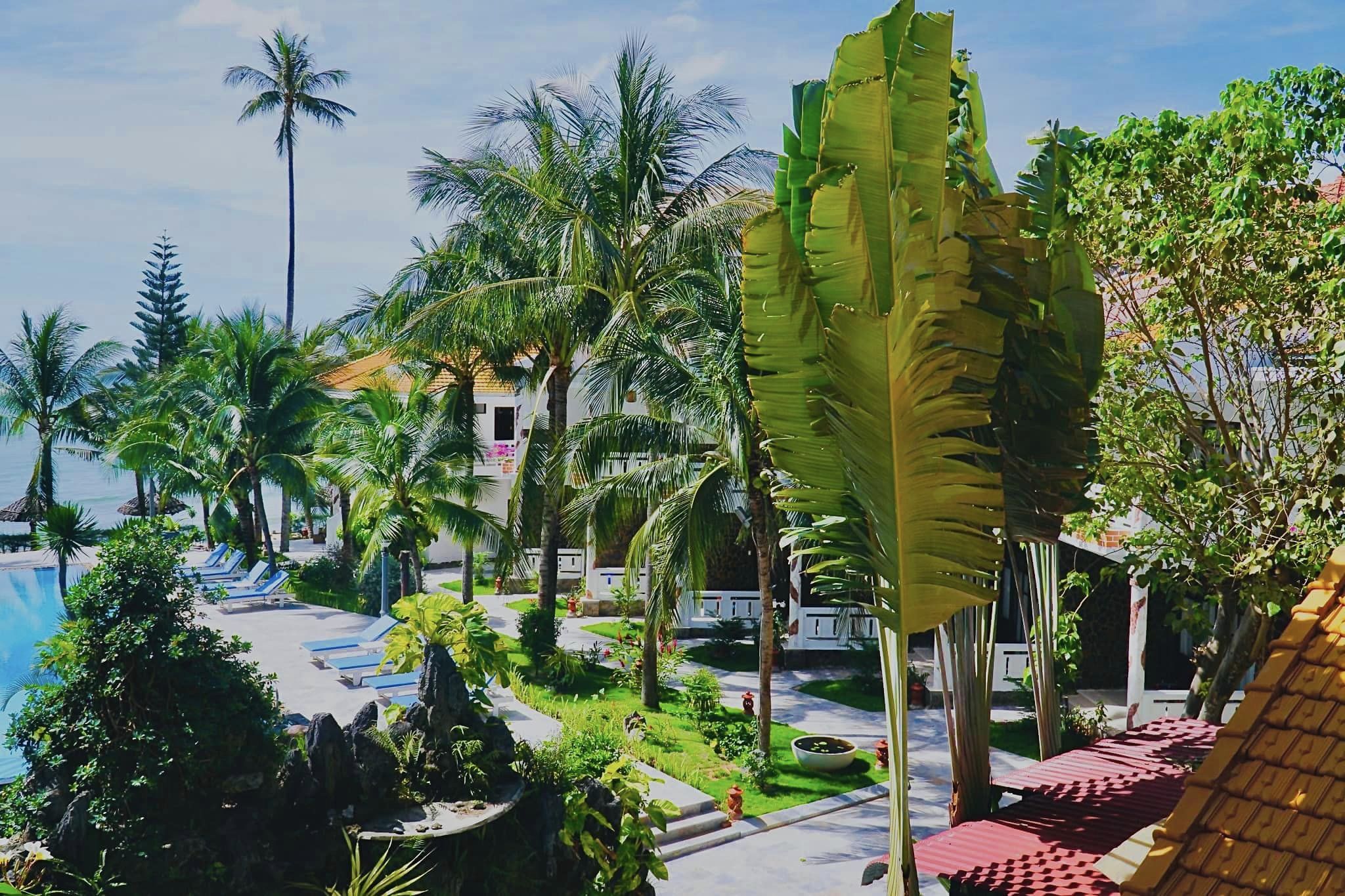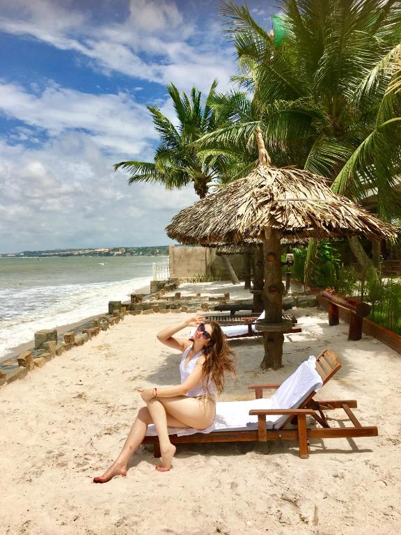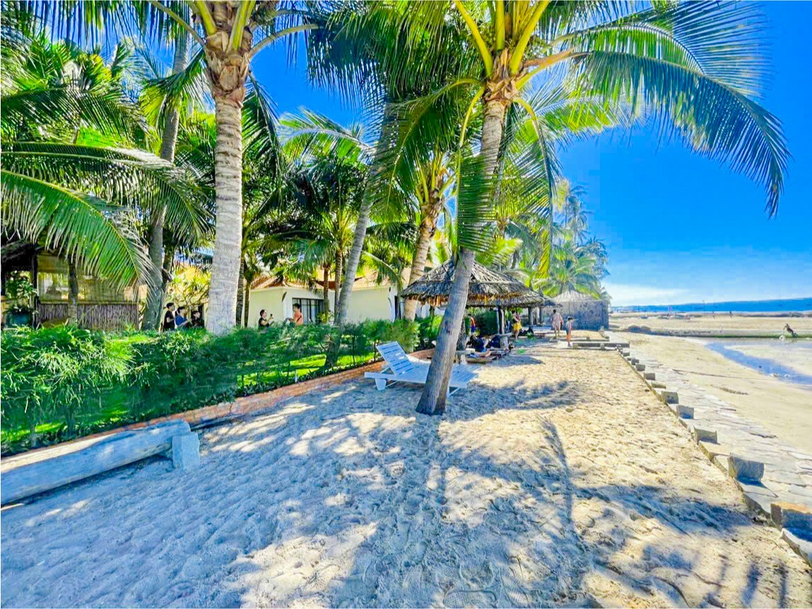 + Resort sở hữu 50 mét bờ biển riêng trong Resort sẽ cho bạn tắm mát, hay phơi nắng tận hưởng ngày hè trên những ghế dài trên bãi cát.