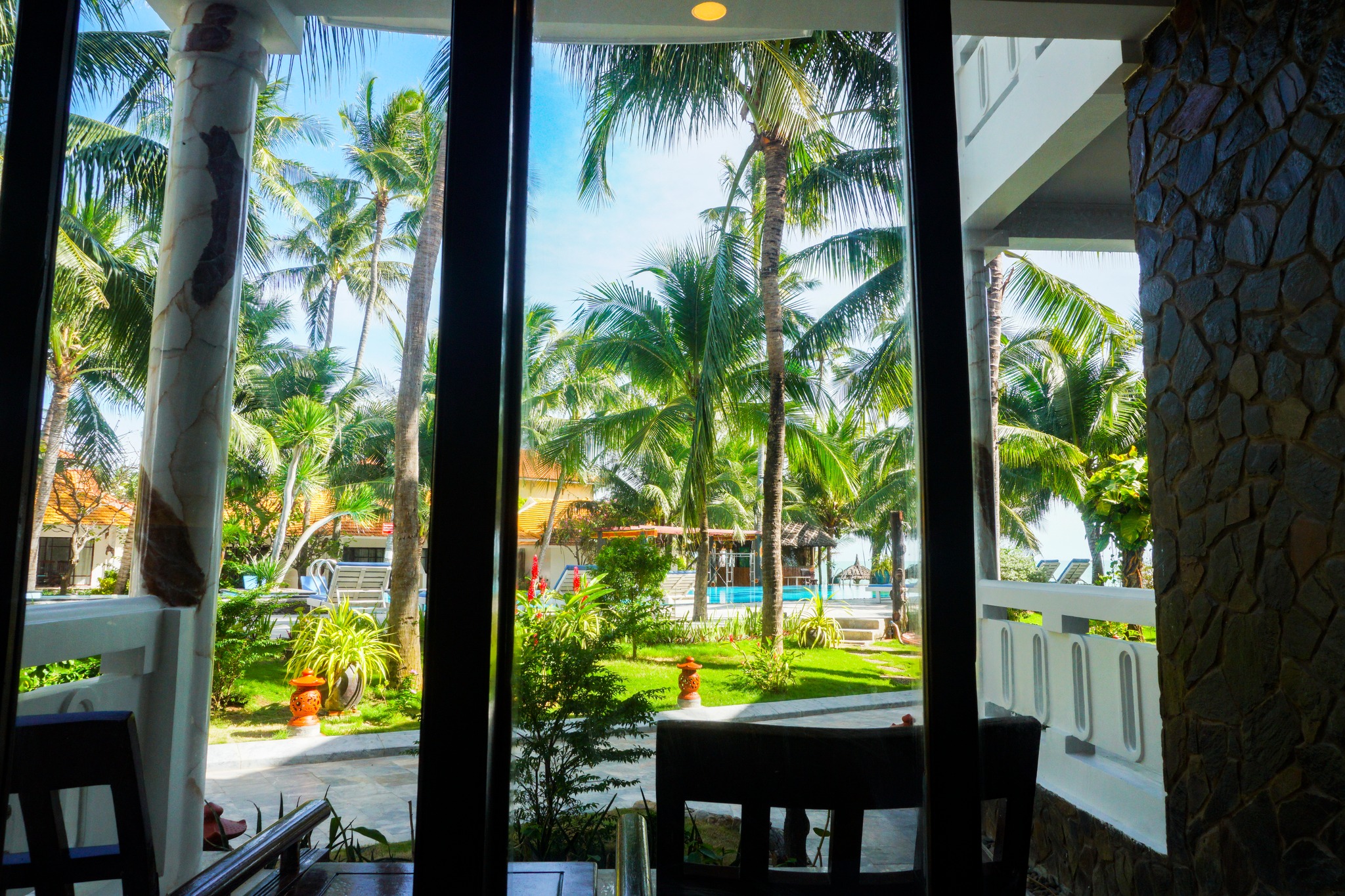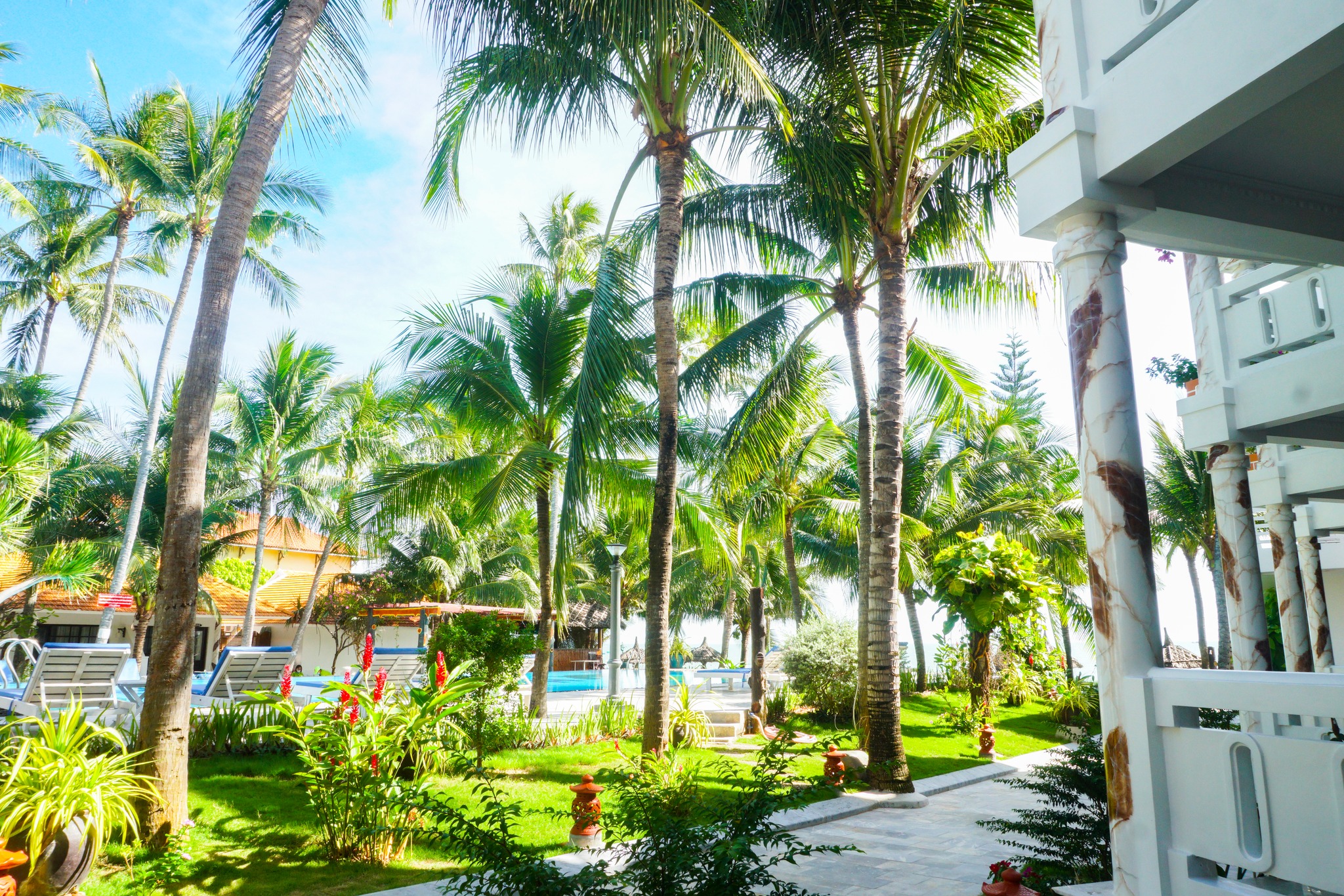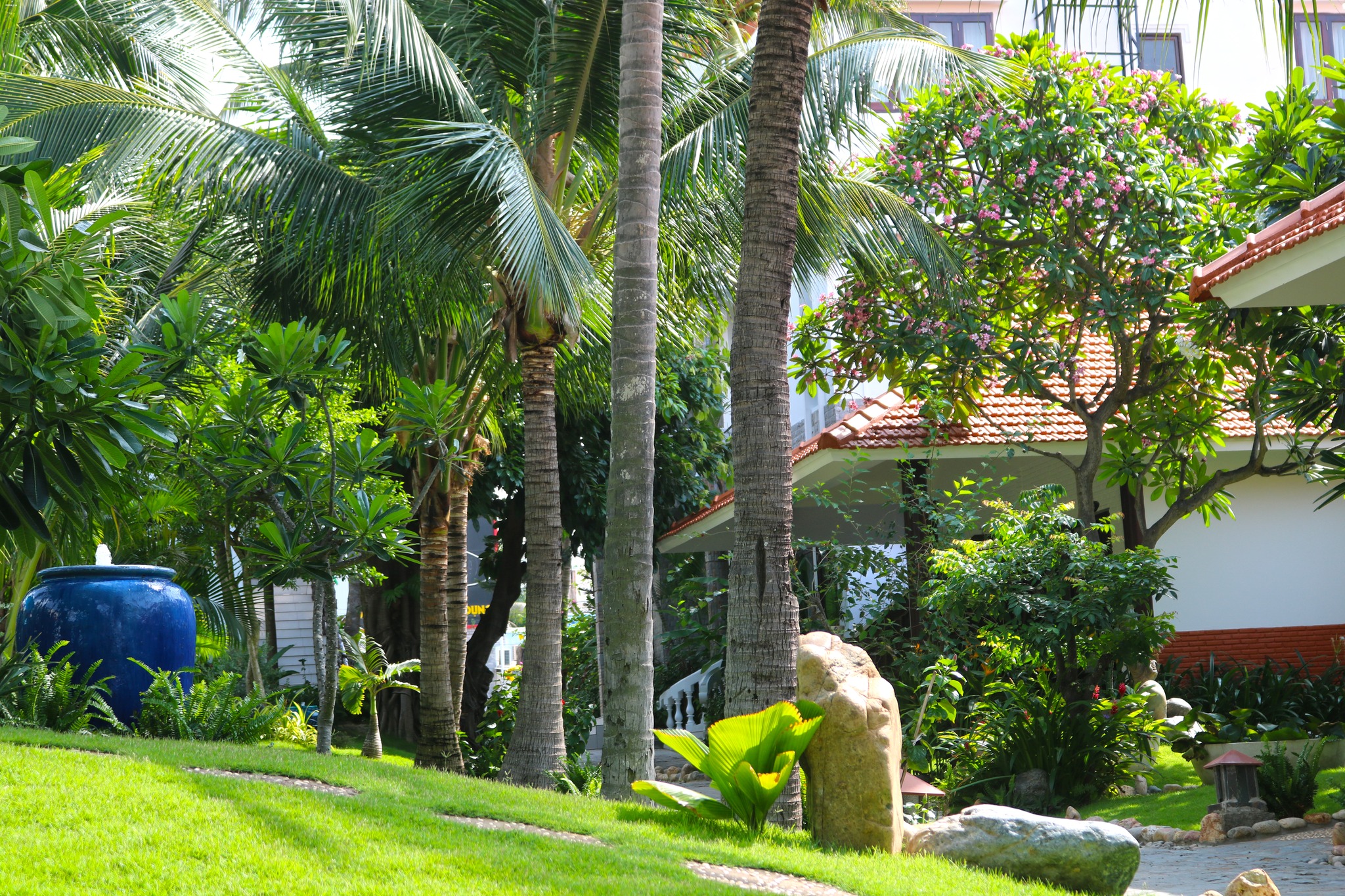 + Những góc vườn xanh tinh tế chăm chút, hoa nở điểm xuyến tạo nên không gian nghỉ dưỡng đích thực