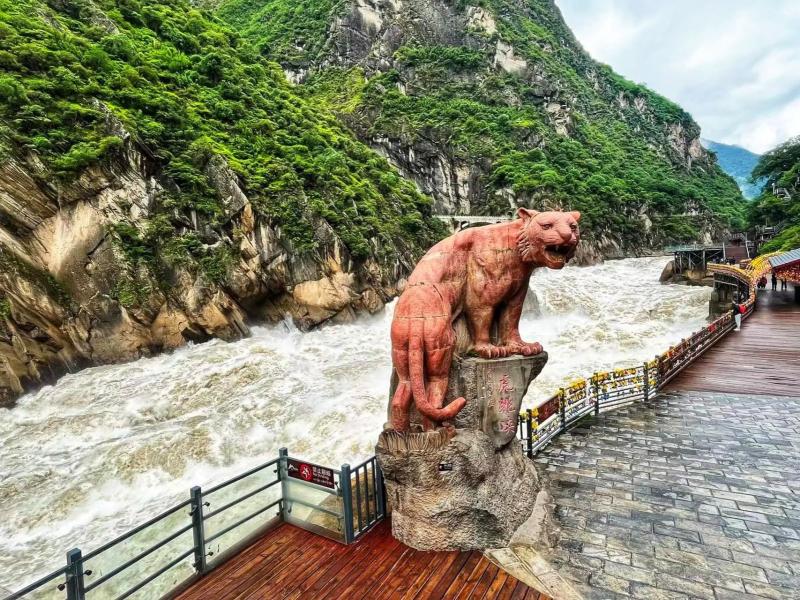 Khe Hổ Nhảy - Khe Hổ Khiêu - Hổ nhảy (Tiger Leaping Gorge): thẳng cảnh thiên nhiên kỳ thú này là một hẻm núi sâu, dài và hẹp nhất thế giới. Nơi đây dòng sông Trường Giang bị chặn bởi hai dãy núi cao Ngọc Long (5600m) và Habar (5396m), đột ngột thót nhỏ lại một đoạn dài 16km, chiều sâu tính từ đỉnh núi xuống đáy hẻm là gần 3900m. Ngay đoạn hẹp nhất có một phiến đá lớn án ngữ, nước chảy xiết xô vào phiến đá tạo nên những âm vang trong khe núi. (Không gồm phí thang máy).