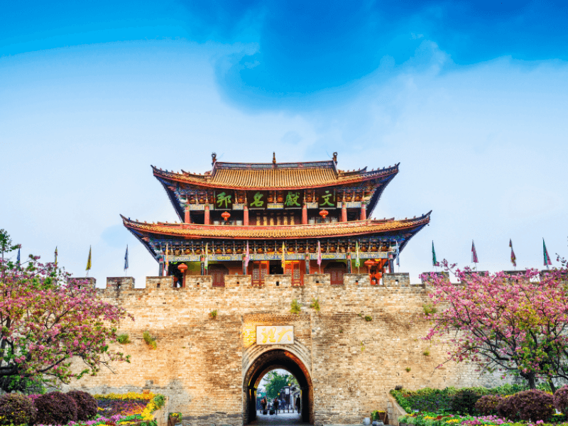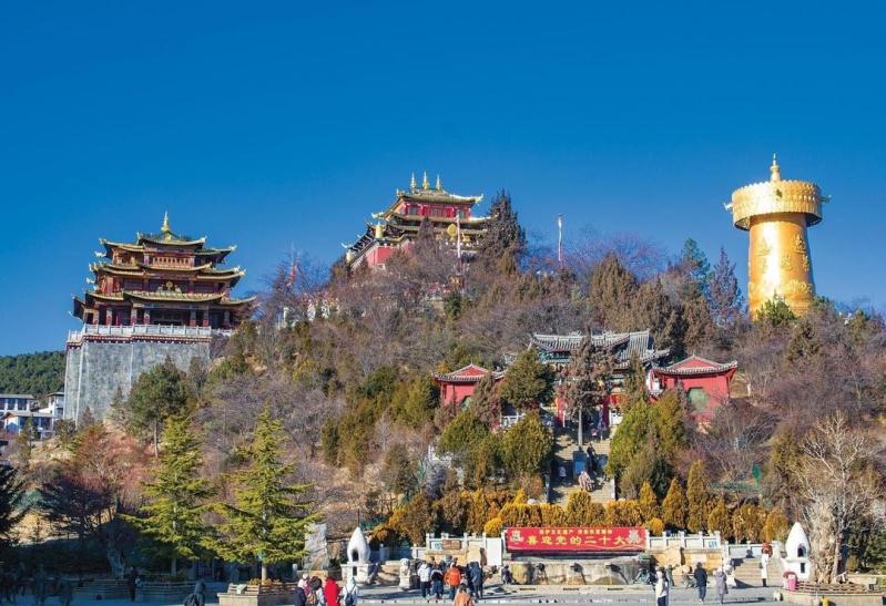 Đền Songzanlin: hình ảnh thu nhỏ của Cung điện Potala (Tây Tạng) nằm trên độ cao 3200m.Nổi bật với những mái nhọn vàng rực rỡ là một ngôi đền lớn nhất Vân Nam, nơi tập trung những nét văn hóa tiêu biểu của người Tạng, được xây dựng từ năm 1679 bởi vị Lạt ma thứ 5, hiện vẫn được bảo tồn nguyên vẹn.