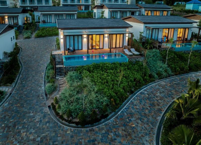 1. Biệt thự và phòng nghỉ: Các căn biệt thự được xây dựng theo hướng mở, với cửa kính lớn để tận dụng ánh sáng tự nhiên và khung cảnh biển tuyệt đẹp. Nội thất được trang bị hiện đại, ấm cúng và sang trọng.