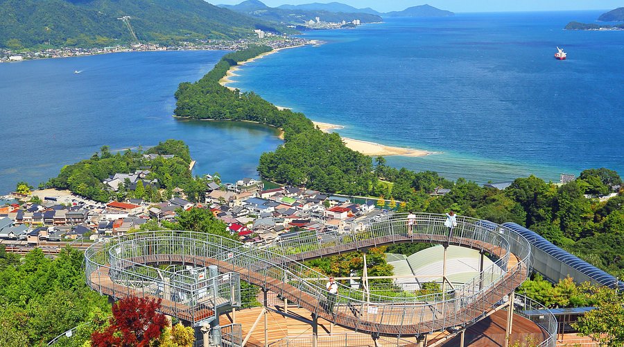 Amanohashidate (Thiên Kiều Lập):Một trong "Nhật Bản Tam Cảnh". Đây là dải cát dài được bao phủ bởi hàng ngàn cây thông xanh mướt bắc ngang qua vịnh Miyazu, trông như một cây cầu nối liền mặt đất với thiên đường.