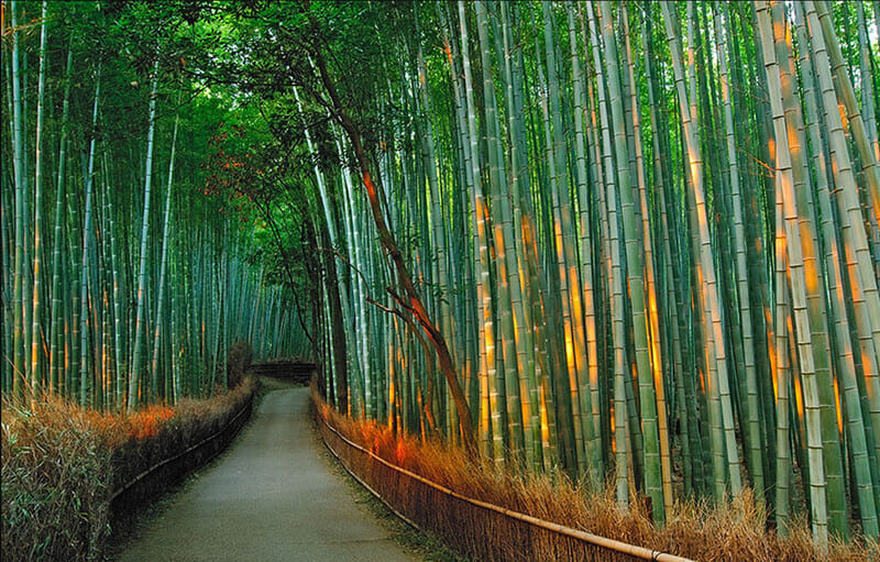 Rừng tre Arashiyama: Một trong những hình ảnh biểu tượng nhất của Kyoto. Đi bộ giữa những rặng tre cao vút tận trời xanh, lắng nghe tiếng lá xào xạc trong gió, bạn sẽ thấy tâm hồn mình được thanh lọc một cách kỳ diệu.