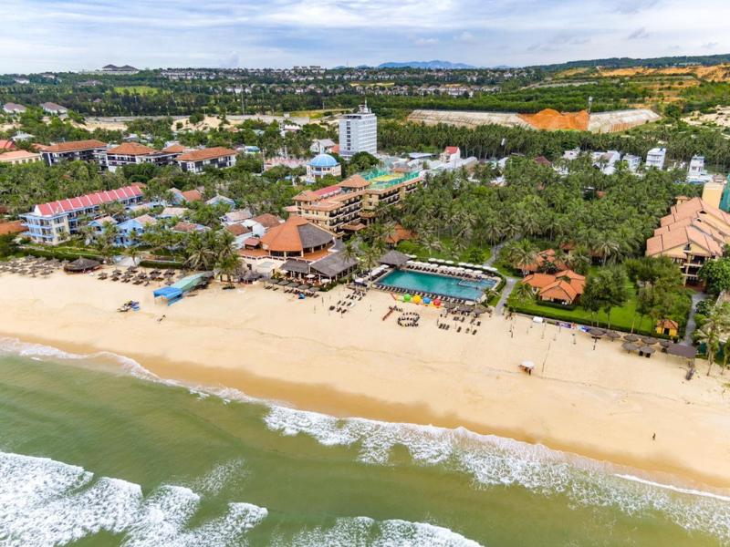 Chiều: Quý khách tự do tắm hồ bơi, tắm biển với bãi biển trải dài cùng bờ cát vàng óng ả, nước biển xanh trong, chỉ các vài bước chân là tới bãi biển trước mặt tiền của khu nghỉ dưỡng. Trải nghiệm các hoạt động như Team building, chèo Sup trên biển, thả diều,... (chi phí vui chơi tự túc).