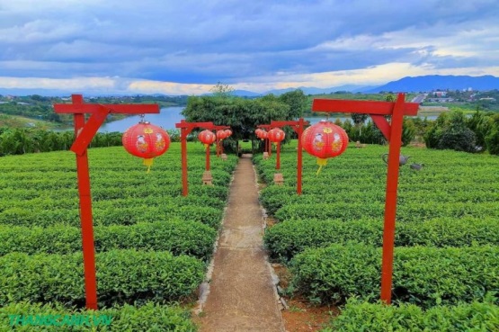 +Chùa Trà - nằm bát ngát giữa đồi chè xanh mát làm cho khách thập phương như buông bỏ hết bao muộn phiền. Chùa nằm hướng chánh tây, chánh điện của chùa mặt tiền được lắp toàn bộ bằng cửa kính cường lực, những buổi chiều tại đây trong chánh điện nhìn ra thì chúng ta được ngắm hoàng hôn tuyệt đẹp của xứ sở đại ngàn.