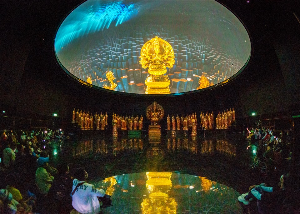+ Chiêm bái khu trưng bày nghệ thuật Phật giáo - là nơi trưng bày những phiên bản mô phỏng nhiều tác phẩm Phật giáo kinh điển, trong đó có nhiều pho tượng nổi tiếng của Việt Nam và thế giới. Hàng trăm hiện vật có ý nghĩa với sự phát triển văn hóa Phật giáo qua nhiều giai đoạn, thời kỳ khác nhau đều tụ hội tại đây. Du khách có thể đi suốt chiều dài hàng nghìn năm lịch sử, tới những mảnh đất xa xôi mà Phật pháp đã đặt chân tới để hiểu rõ hơn về đặc trưng văn hóa nghệ thuật Phật giáo Việt Nam cũng như trên thế giới. Tại khu vực mái vòm tầng 1, du khách có cơ hội tìm hiểu và khám phá về vũ trụ trong quan niệm của Phật giáo thông qua công nghệ chiếu phim video mapping với các thiết bị trình chiếu, âm thanh hiện đại hàng đầu thế giới.